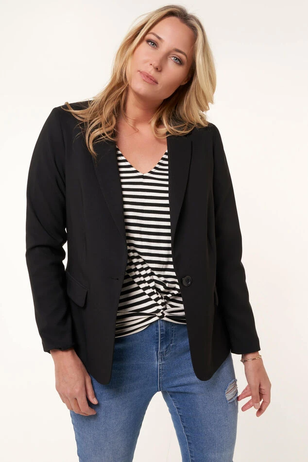 Un magnifique blazer intemporel. Le blazer est dotĂ© dâune jolie doublure Ă la taille qui lui permet de sâadapter Ă votre morphologie tout en douceur. Il comporte un col Ă revers et se ferme Ă lâaide dâun bouton.