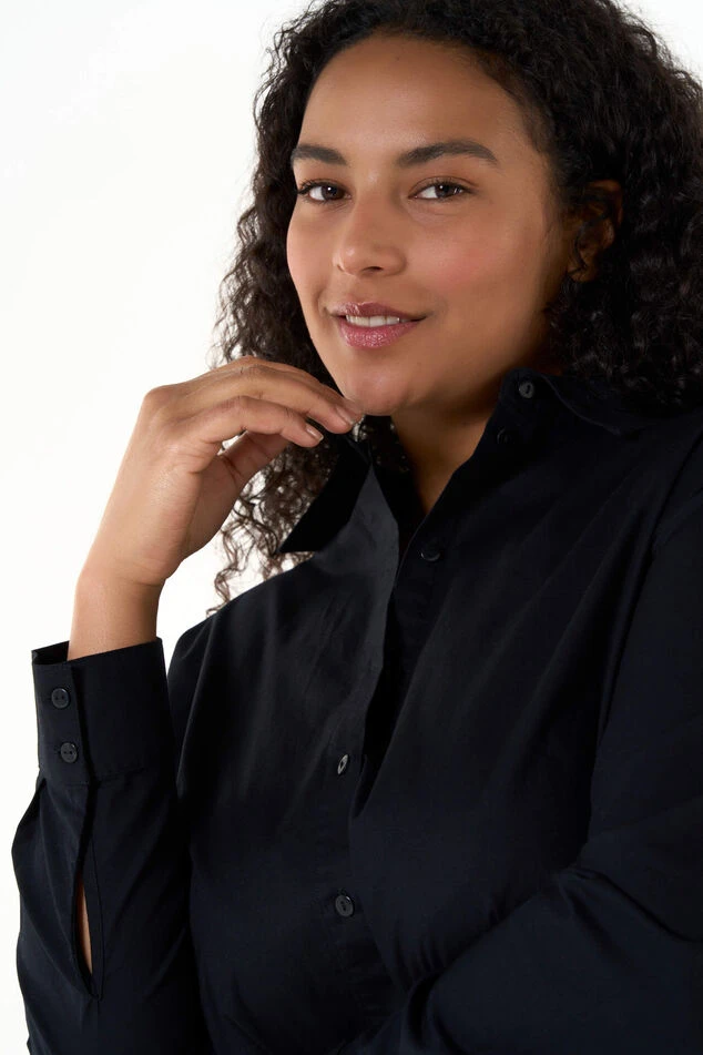 Un chemisier ajusté avec des boutons-pression, un col classique, avec des manches longues et des boutons à l’ourlet. Ce cardigan basique ne peut pas manquer dans votre garde-robe !