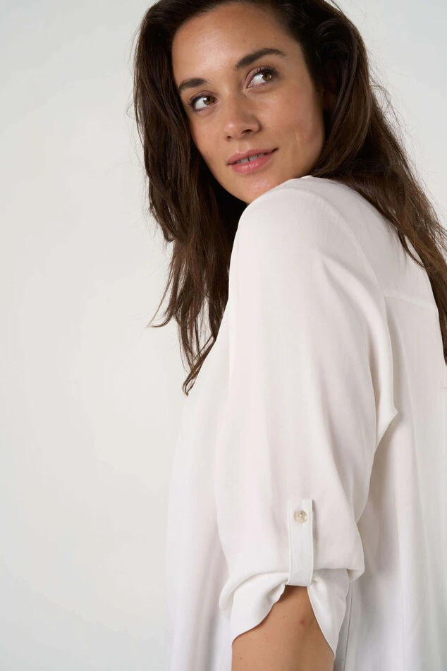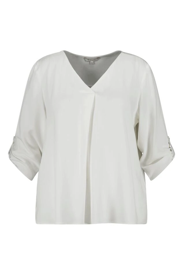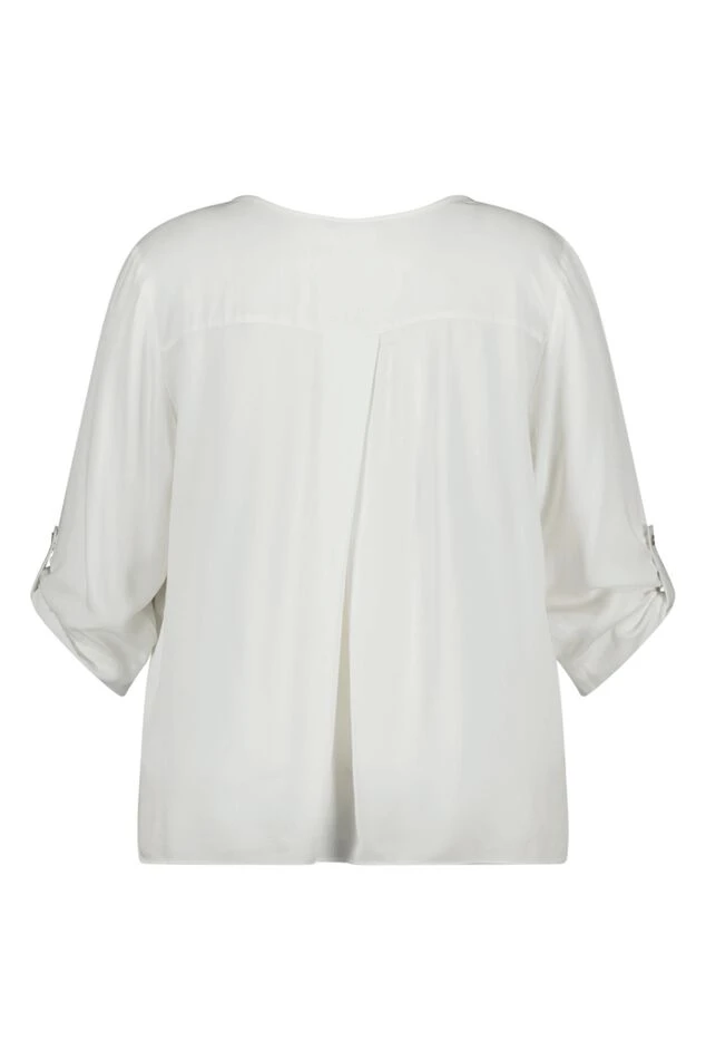 Ce chemisier présente un élégant col en V et des manches trois-quarts. Il est fabriqué en viscose légère, ce qui lui confère une coupe confortable et légère. Le chemisier est polyvalent et peut être porté aussi bien de manière décontractée que formelle. Il convient parfaitement tant pour la journée que pour le soir et peut facilement être stylé pour différentes occasions. Un vêtement intemporel et élégant qui complète toute garde-robe.
