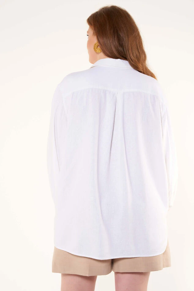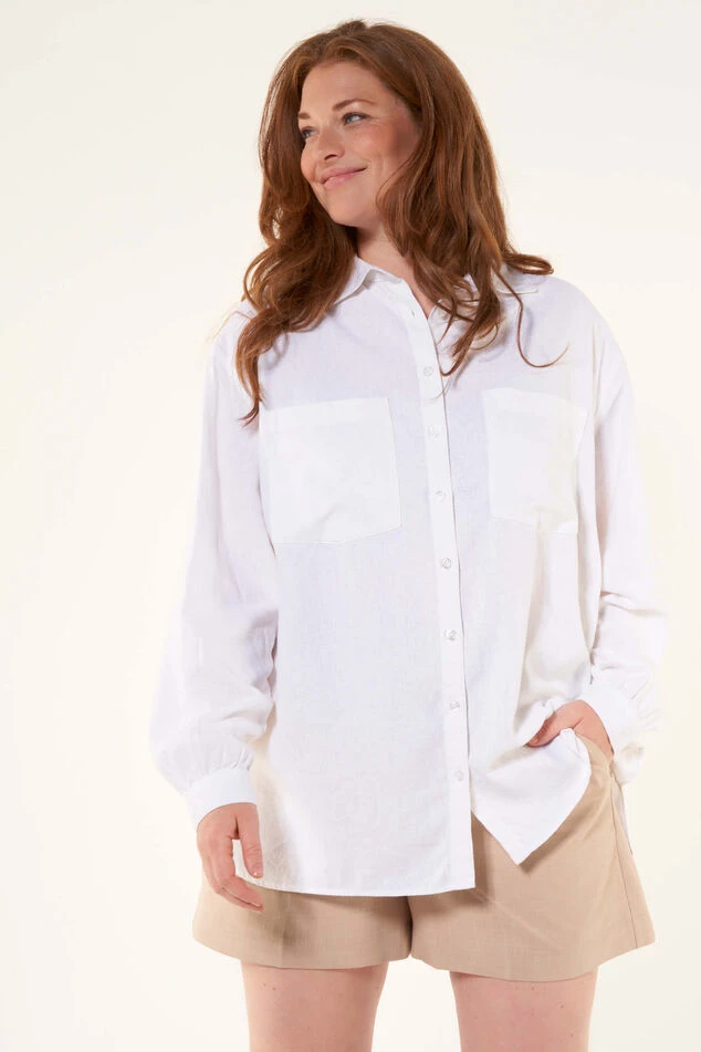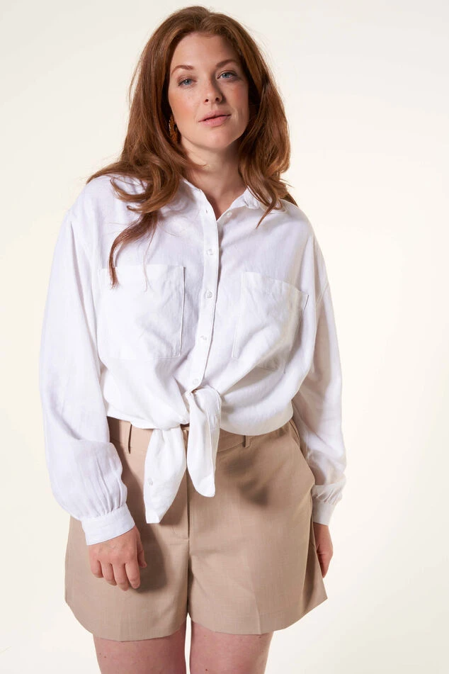 Optez pour un look en lin cet été avec ce chemisier ! Il présente une coupe légÚrement ample, des manches longues et un col de chemise. De plus, le chemisier possÚde 2 poches sur le devant et est idéal à associer à nos jeans.
