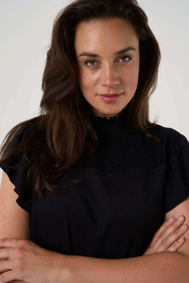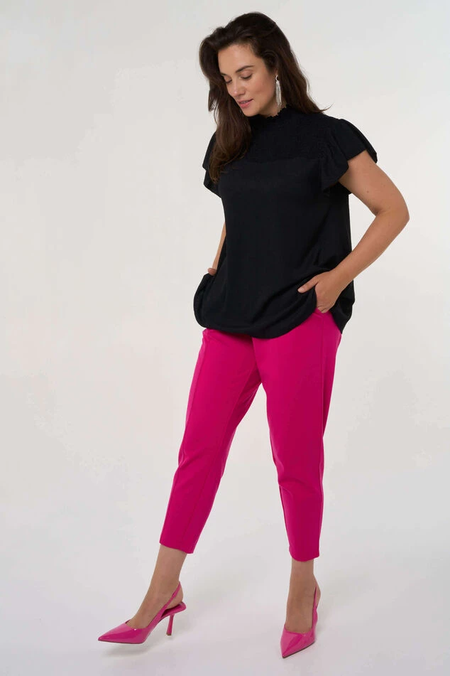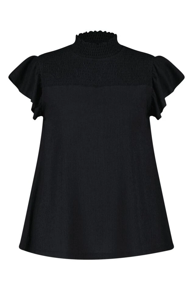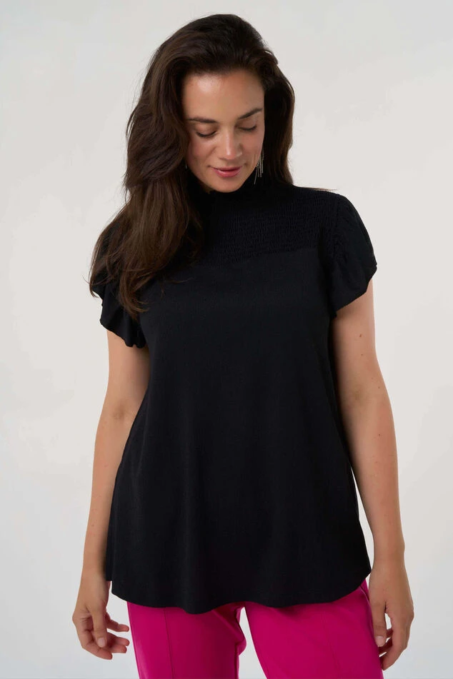 Ce haut à manches courtes et à volants est une pièce tendance et élégante. Le col roulé et l’encolure sont ornés de détails smockés pour un effet fantaisie et féminin. Découvrez le confort ultime avec notre haut, conçu dans un tissu extensible pour un ajustement parfait. Son design évasé lui permet de ne pas être trop serré au niveau du ventre, créant ainsi une silhouette flatteuse. Parfait pour une variété d’occasions, de la plus décontractée à la plus formelle. Laissez-vous séduire par ce magnifique haut aux détails uniques.