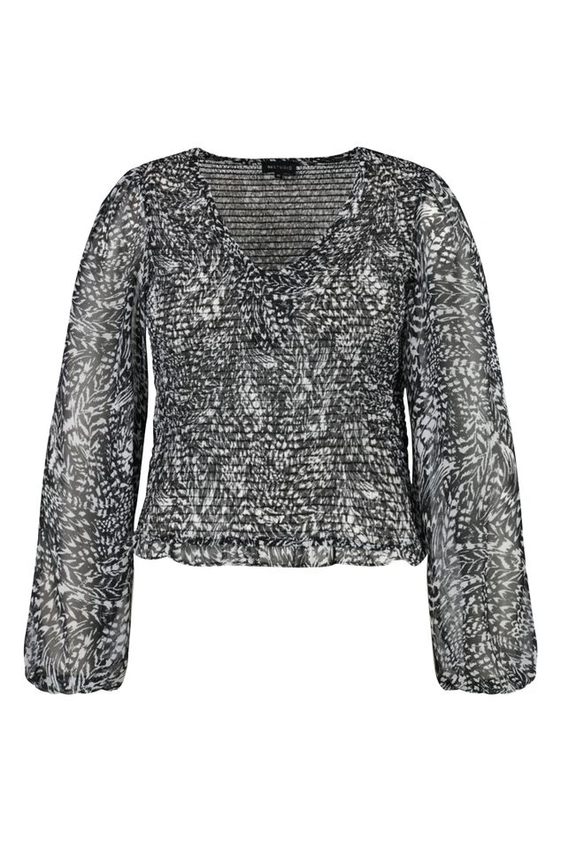 Ce haut imprimé est doté de manches larges et d’un col en V profond. Il peut être joliment combiné avec une jupe crayon ou simplement avec un pantalon ou un jean. Combinez ce haut avec l’un des autres articles de MS Studio.