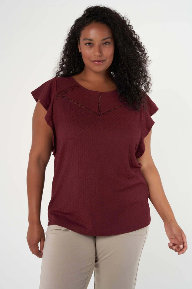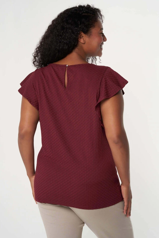 Ce magnifique haut à manches capuchon et à volants est un véritable succès ! Avec ses détails en ruban et son col rond, il ajoute une touche d’élégance à toutes les tenues. Le tissu extensible assure une coupe confortable, tandis que la coupe droite et les détails texturés sur le dessus lui confèrent un look branché. Un must absolu pour toute fashionista !