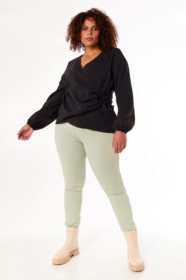 Le modèle mesure 1,79 m et porte une taille 44/L