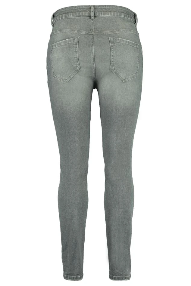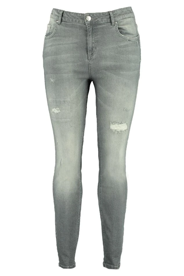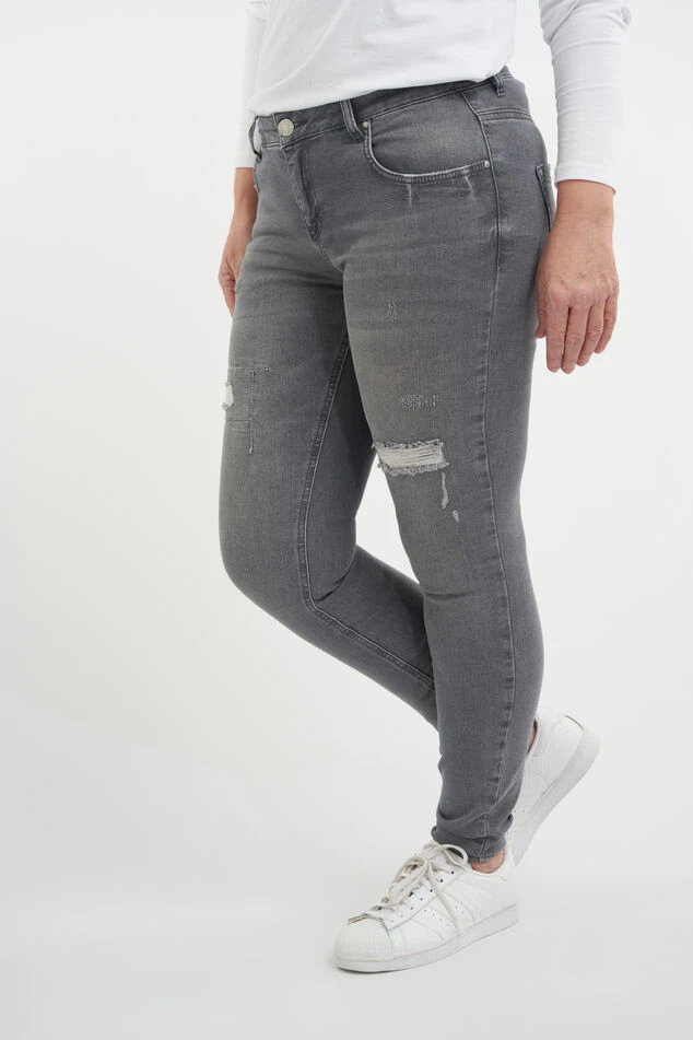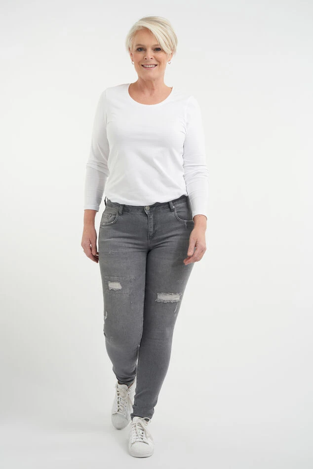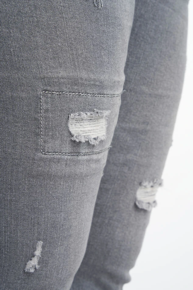 Ce jean a une coupe ajustée. Il est doté de cinq poches, d’une braguette à boutons et à glissière et de passants de ceinture. Avec ses décors déchirés, il peut être porté confortablement avec des baskets, mais aussi avec des talons pour un style plus élégant.