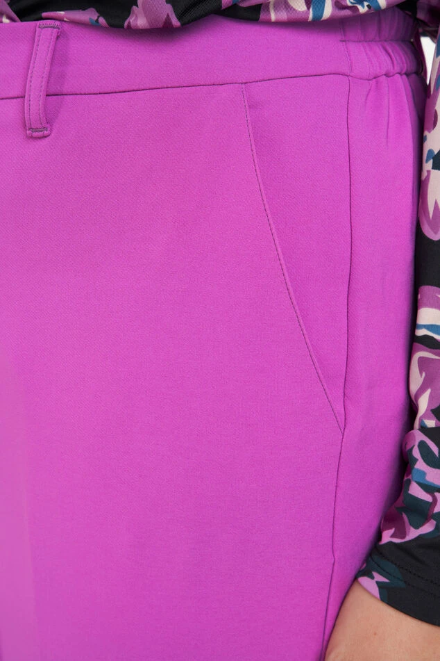 Ce pantalon a une coupe ajustée. Le pantalon est fabriqué dans un tissu de belle qualité et est confortable grâce à la taille élastique. Vous pouvez combiner le pantalon avec des bottes à la mode, mais aussi avoir fière allure avec des baskets cool.