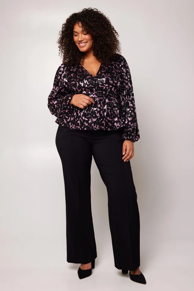 Ce pantalon peut être combiné à la fois chic et tendance. Les jambes amples et la taille élastique rendent ce pantalon très confortable à porter. En outre, le pantalon est doté de passants de ceinture et de poches latérales.