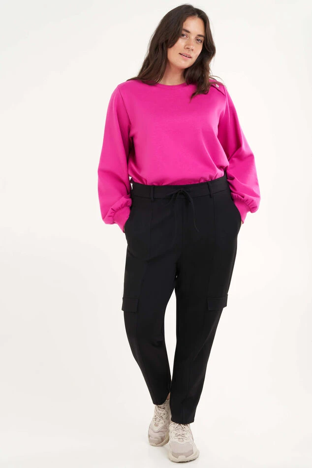 Un pantalon tendance mais également confortable. Il comporte une bande élastique à la taille avec un cordon et des poches avant et arrière. Ce pantalon cargo est doté de poches décoratives sur les côtés.