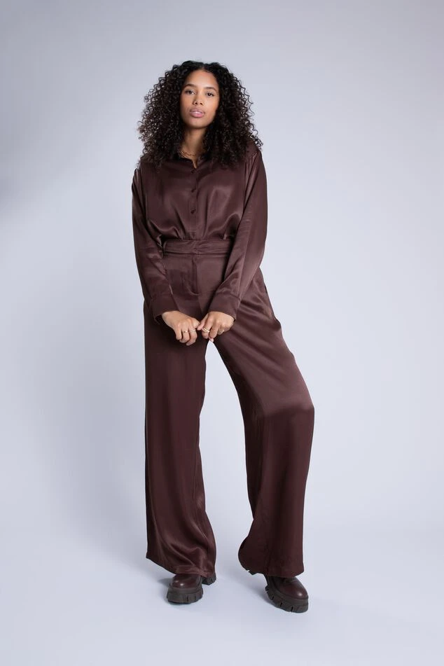 Ce pantalon en satin vous enveloppe confortablement. La taille est élastiquée. Combinez ce pantalon avec le haut assorti pour créer un joli ensemble. Vous êtes totalement en vogue avec cet article de MS Studio !
