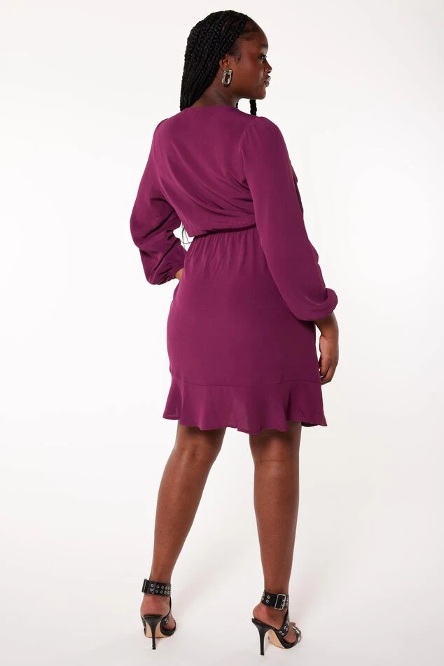Opterez-vous pour cette robe portefeuille à la pointe de la mode ? Elle présente un col en V et une taille élastique. Elle est également dotée d’un cordon que vous pouvez resserrer ainsi que d’un volant sur la jupe pour un effet fantaisie. La robe a des manches ballon avec des poignets élastiques pour compléter le look. Parfait à combiner avec nos ceintures de la collection !
