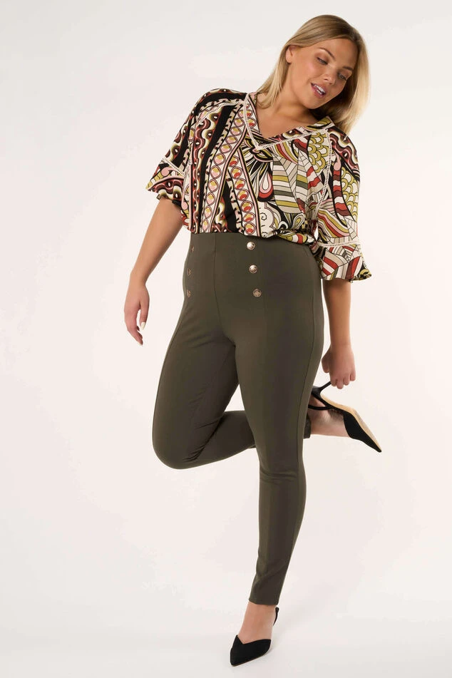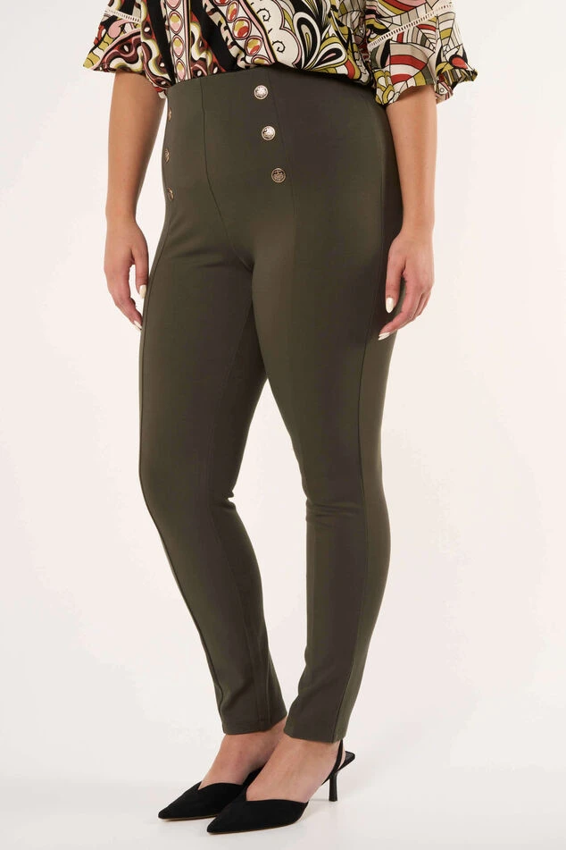 Ce tregging tendance à jambes skinny est confectionné avec un tissu extensible pour un confort ultime et une coupe parfaite. Les boutons dorés et la couleur verte vive ajoutent une touche d’élégance à votre tenue. Ce pantalon polyvalent peut être associé à différents hauts et chemisiers. Les possibilités sont infinies lorsqu’il s’agit de créer un style unique. Un must-have pour les femmes qui aiment être à la mode.
