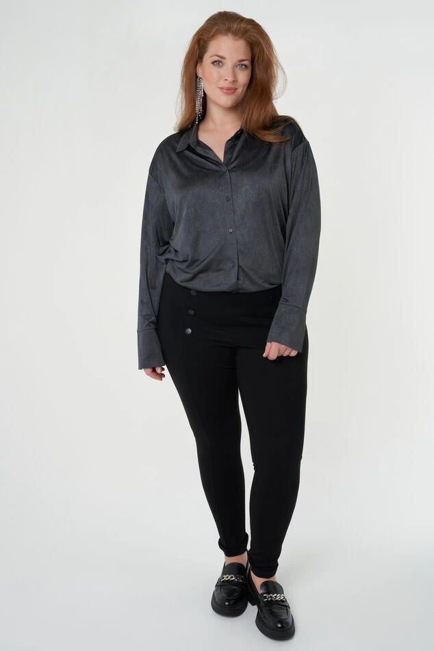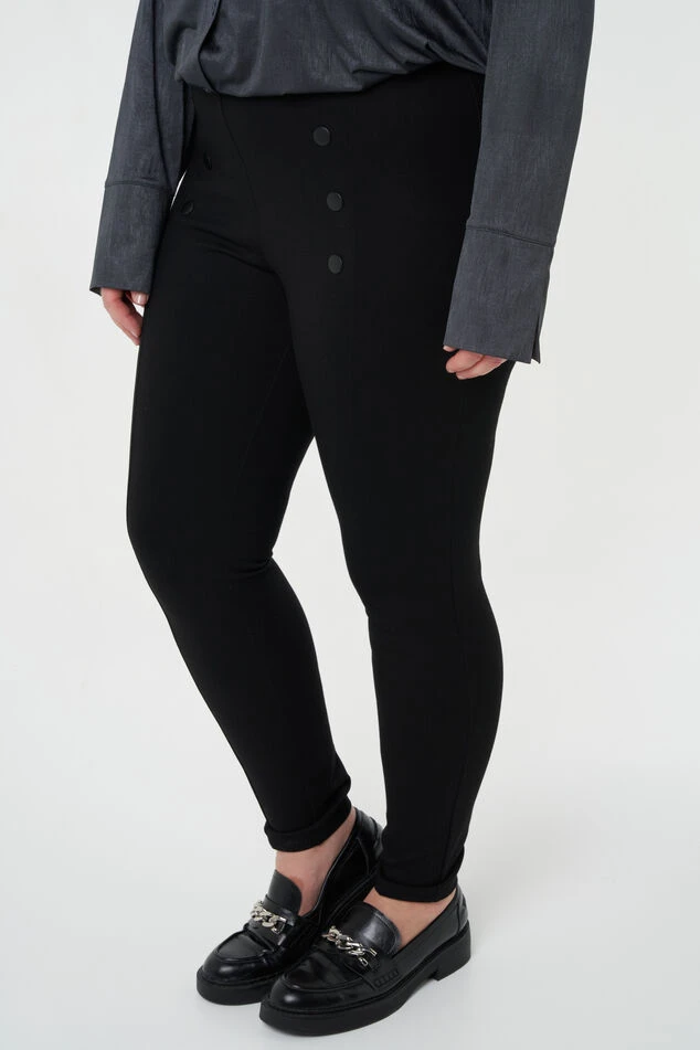 Ce tregging confortable est confectionné avec une matière extensible, ce qui lui permet d’être à la fois flatteur et souple. Ses boutons et sa ceinture ajoutent une touche de style à votre tenue. Associez-le à un chemisier ample pour un look tendance et chic en toute simplicité. La combinaison de notre tregging et de notre chemisier constitue un équilibre parfait entre le confort et la tendance, ce qui en fait un choix idéal pour toutes les occasions.