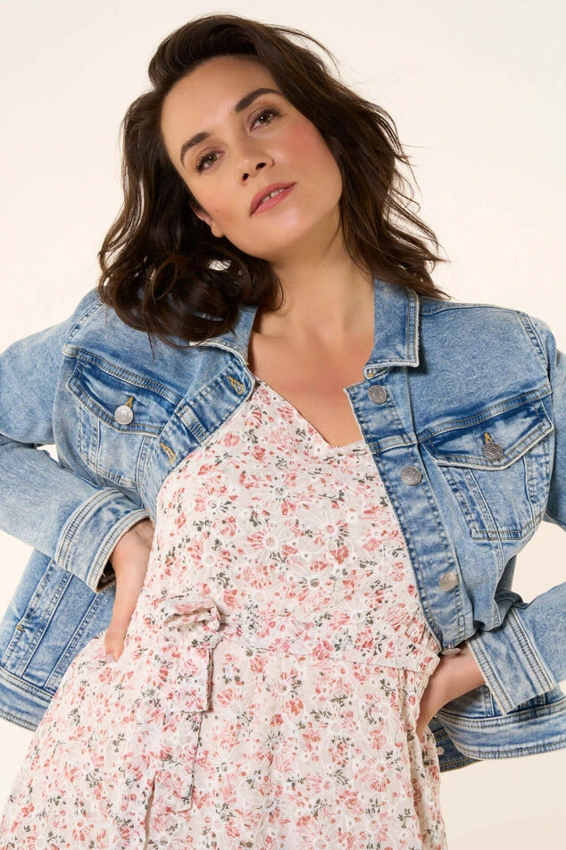 Cette veste en jean comporte des boutons sur le devant, deux poches fendues et deux poches plaquées. Portez-la avec un jean ou un pantalon. Disponible également dans d’autres couleurs.