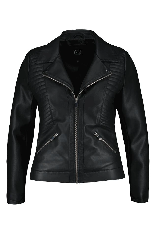 Cette veste tendance est confectionnée en simili-cuir souple. Elle comporte un col à revers, une fermeture éclair et 2 poches zippées. Les fermetures éclair et les boutons argentés ajoutent une touche de brillance à cette veste. La taille et les manches sont côtelées, un tissu extensible qui permet à la veste de s’ajuster parfaitement à votre morphologie.